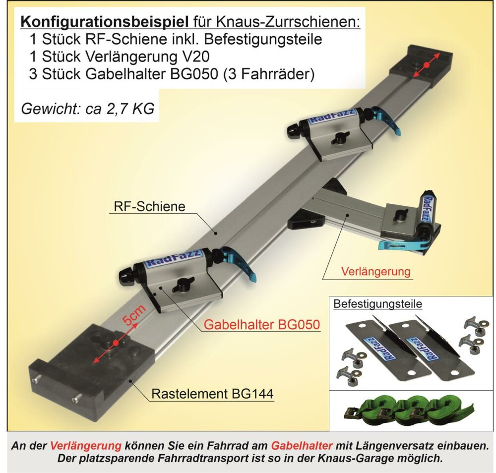 Die gewählte RF-Schiene befestigen Sie an die Zurrschienen P15 in der Wohnmobilgarage https://www.radfazz.de/Befestigungspunkte
