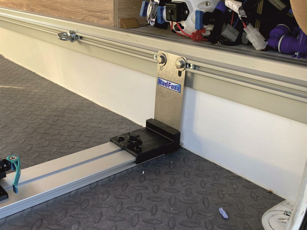 Die gewählte RF-Schiene befestigen Sie an die Zurrschienen P15 in der Wohnmobilgarage https://www.radfazz.de/Befestigungspunkte