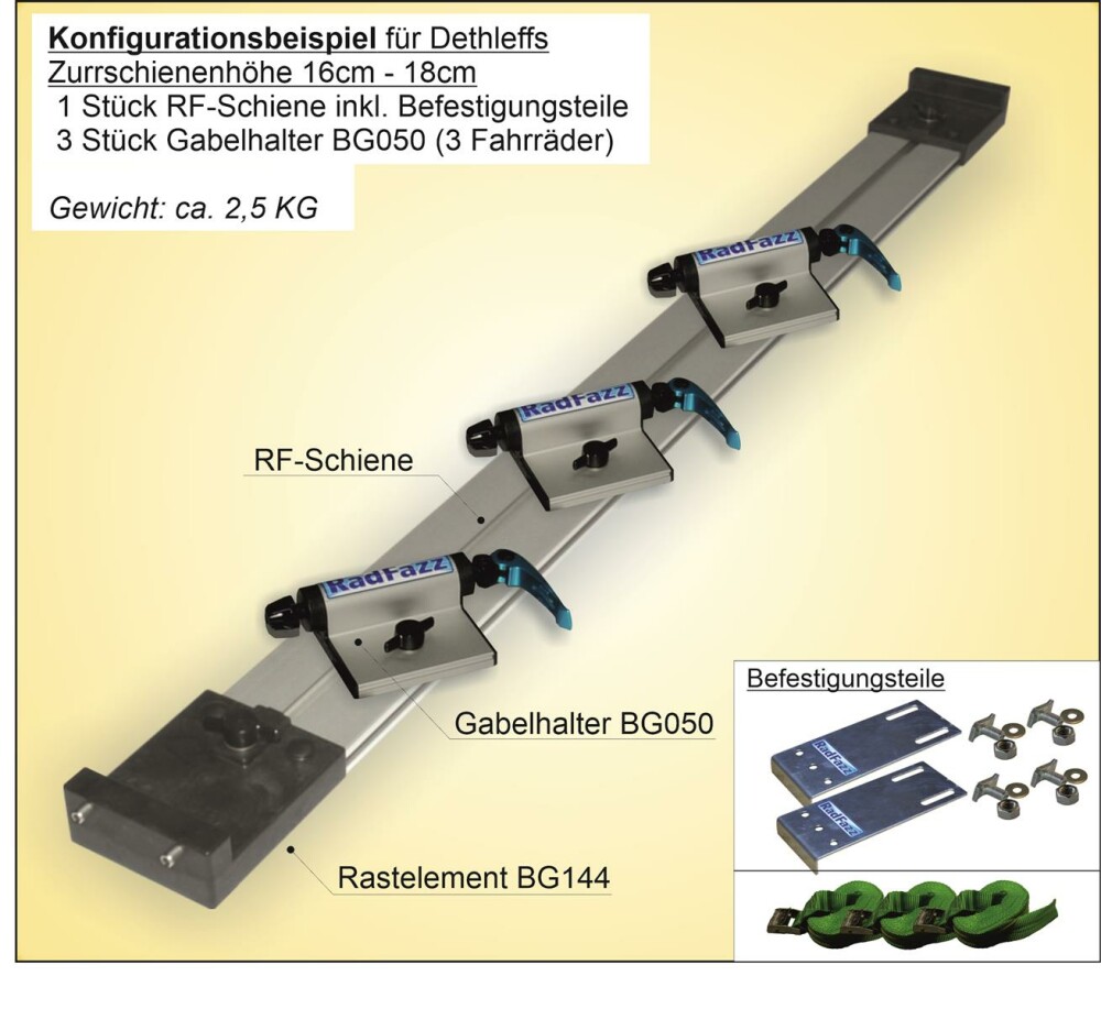 Fahrradträger RF-Schiene, Länge=110cm, an die Dethleffs Zurrschienen in Bodenhöhe 16cm - 18cm