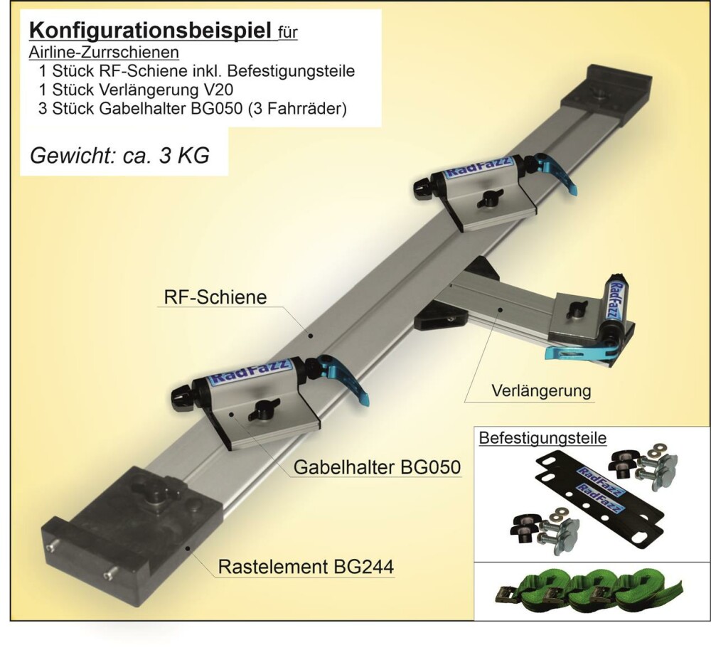 Fahrradträger RF-Schiene, Länge=120cm, an die Airline-Zurrschienen Bodenhöhe 2,5cm - 3,5cm, P15