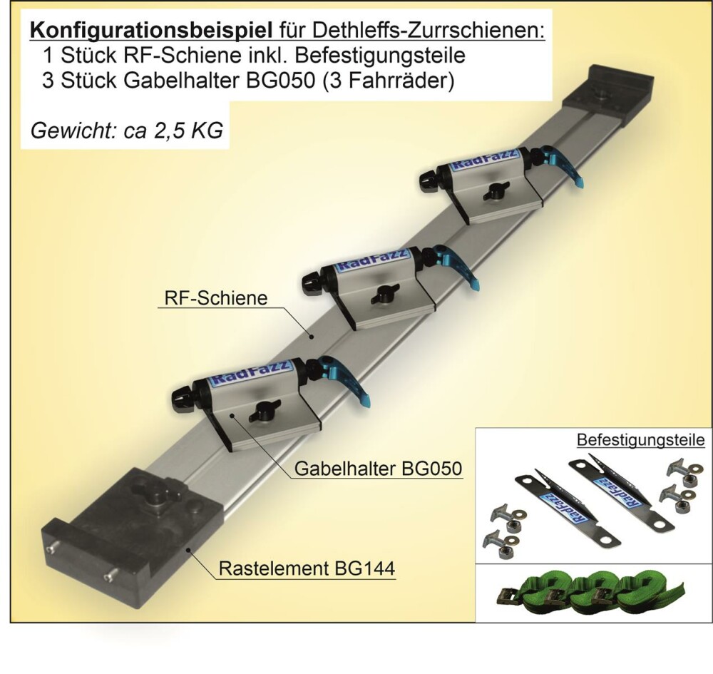 Die gewählte RF-Schiene befestigen Sie an die Zurrschienen P15 in der Wohnmobilgarage https://www.radfazz.de/Befestigungspunkte