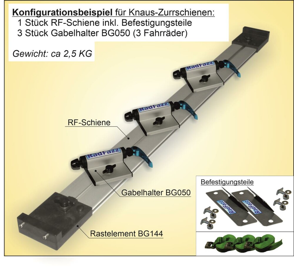 Die gewählte RF-Schiene befestigen Sie an die Zurrschienen P15 in der Wohnmobilgarage https://www.radfazz.de/Befestigungspunkte