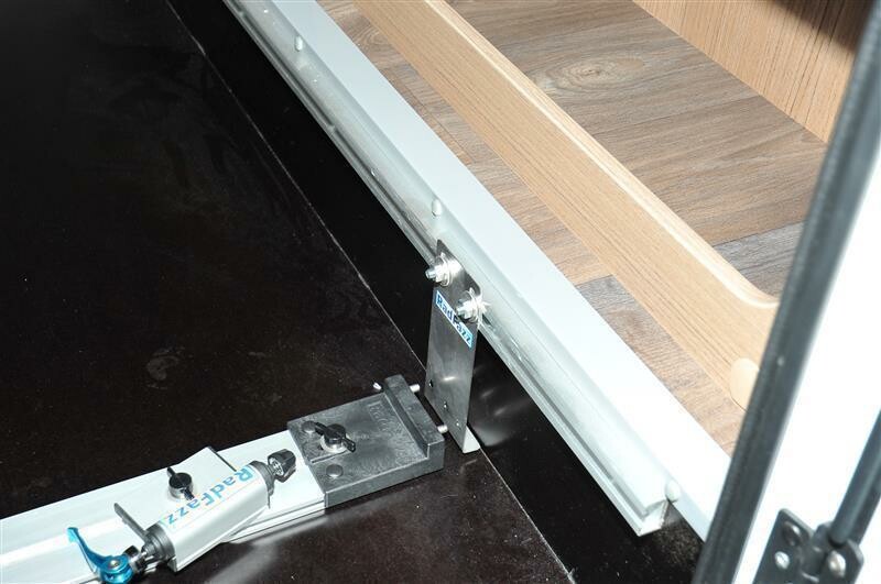 Die gewählte RF-Schiene befestigen Sie an die Zurrschienen P15 in der Wohnmobilgarage https://www.radfazz.de/Befestigungspunkte
