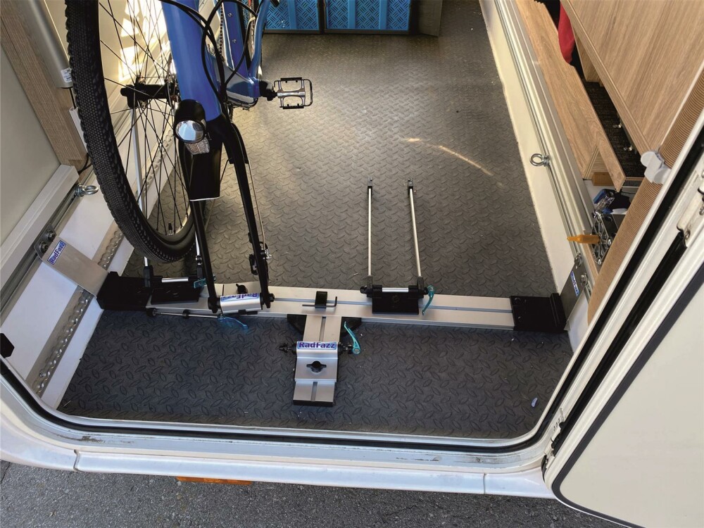 Fahrradträger RF-Schiene, Länge=90cm, an die Eura Mobil-Zurrschienen, Bodenhöhe 15,5cm - 16,5cm