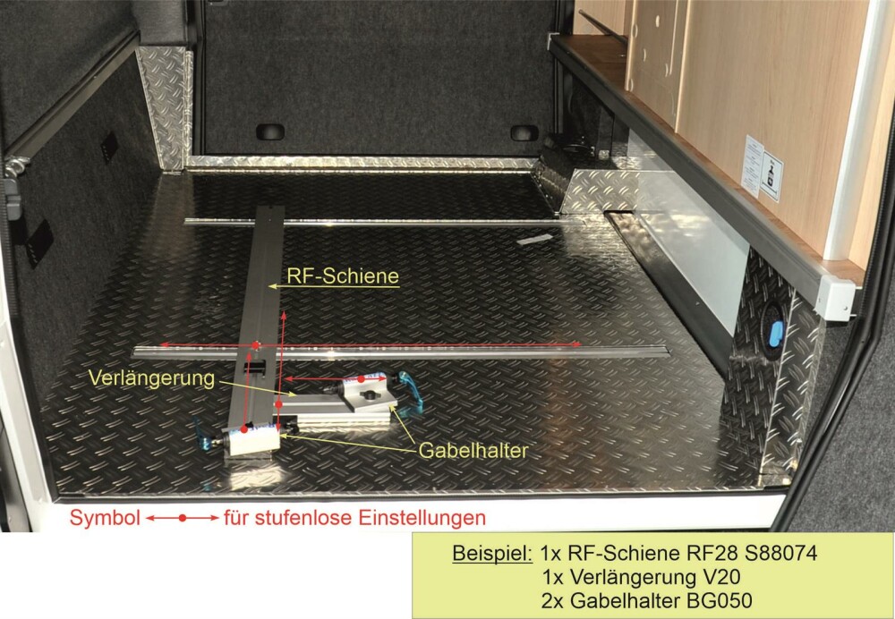 Fahrradträger-Schiene inkl. Befestigungsteile zum Einbau an die Hymer-Boden-Zurrschienen