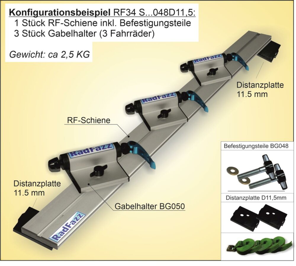 RF-Schiene Länge l=120cm inkl. Befestigungsteile mit 2x D11,5; für die Befestigungspunkte P9, Gewindeabstand 107cm-117cm